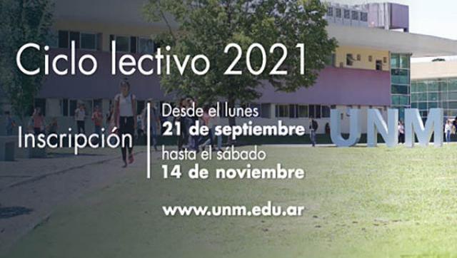 A partir del lunes 21 de septiembre y hasta el sábado 14 de noviembre, la Universidad Nacional de Moreno (UNM) llevará adelante la inscripción al ciclo lectivo 2021, con una propuesta académica de 10 carreras de grado universitario, 2 ciclos de licenciatura y 4 tecnicaturas universitarias.
