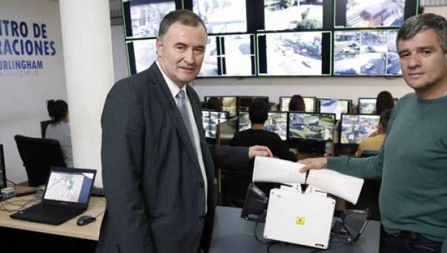 El intendente le mostró a su par Mauro Poletti la implementación de las nuevas Alarmas Vecinales que se instalan en la comuna y que son fabricadas por el municipio de Hurlingham.