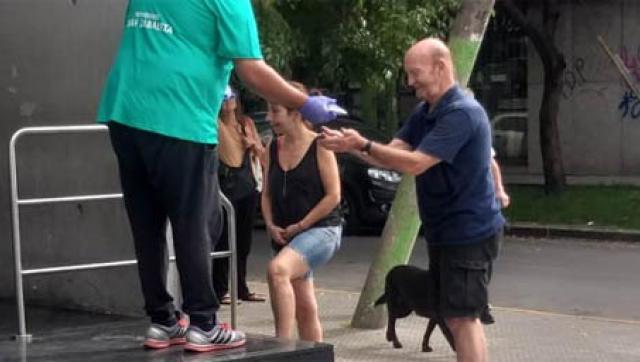 Además, se asisten a los adultos mayores que acuden al Banco Piano para cobrar sus jubilaciones, indicándoles la distancia a la que deben permanecer entre sí, y entregándoles alcohol en gel.