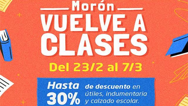 Del lunes 23 de febrero al sábado 7 de marzo, las familias de Morón podrán acceder a descuentos de hasta el 30% y cuotas sin interés en útiles, indumentaria y calzado escolar en comercios adheridos del distrito.