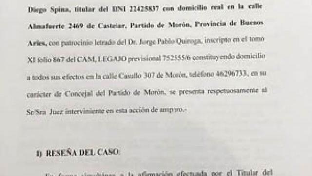En el marco de una acción de amparo en la que se denunció la entrega de prebendas electorales a cambio de votos, el juez penal Gabriel Alberto Castro dispuso que hasta tanto culmine el proceso electoral, el intendente de Morón se abstenga de entregar mercadería con su nombre, en clara violación de la ley electoral. Se lo denunció por entregar chapas, tirantes, colchones, bolsones de alimentos, piojicidas, guardapolvos, vestimenta y electrodomésticos con una etiqueta que lleva su nombre, entre otros productos.