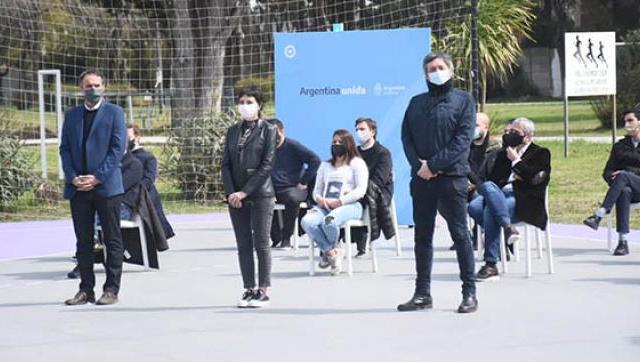 También acompañaron la presentación, el jefe de Gabinete Santiago Cafiero, el ministro del Interior Wado de Pedro, la ministra de Seguridad de la Nación Sabina Frederic, el ministro de Seguridad de la provincia Sergio Berni, el ministro de Obras pública Gabriel Katopodis, el ministro de Transporte Mario Meoni, el presidente de la Cámara de Diputados Sergio Massa, el presidente del bloque de diputados del Frente de Todos Máximo Kirchner, y el director de la Gendarmería, Comandante general Andrés Severino, entre otros funcionarios y jefes comunales.