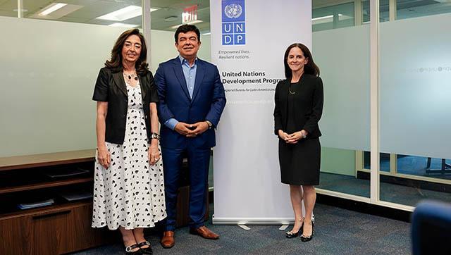Dentro de la intensa agenda en EEUU, Espinoza mantuvo una reunión de trabajo en la sede de Naciones Unidas con la directora Regional adjunta del Programa de Naciones Unidas para el Desarrollo de América Latina y el Caribe (PNUDLAC), Linda Maguire, y la embajadora argentina ante la Organización de Naciones Unidas (ONU), Marilita Squeff. En el encuentro se intercambiaron experiencias e iniciativas como el Programa Municipal Podés, a través del cual se promueve la inclusión social y educativa de chicas y chicos de entre 12 y 21 años en situación de vulnerabilidad, con el objetivo de aumentar el ingreso, permanencia y terminalidad educativa; brindándoles apoyo, asesoramiento y orientación, como así también fortaleciendo los lazos entre los adolescentes y jóvenes, con la escuela, la familia y la comunidad. Además, desde el Programa, acceden a becas de acompañamiento para el trayecto formativo en las dos casas de altos estudios del distrito: la UNLaM y el CUDI.