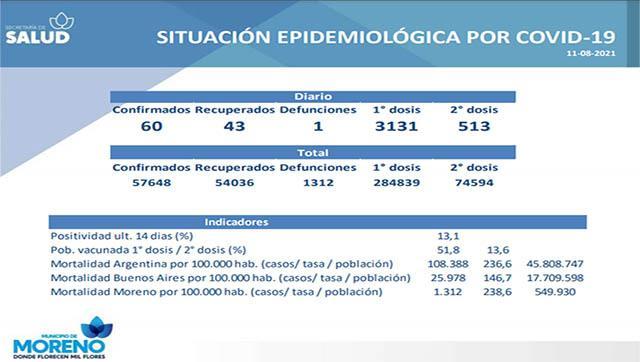 El municipio de Moreno ya aplicó 361.151 vacunas contra el COVID-19, de las cuales 284.839 corresponden a la primera dosis y 74594 a la segunda.