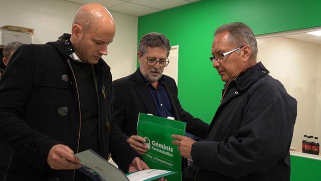 Estuvieron presentes durante la visita la Subsecretaria de Financiamiento y Competividad PyME, Laura Tuero, la Directora Nacional de Gestión y Política PyME, Daniela Moya, el Jefe de Gabinete, Pablo Descalzo, la Directora Gral. de Desarrollo Económico Local, Natalia Lazzeri, el Presidente de Géminis Farmacéutica S.A., Carlos Eraldo, el Gerente General, Hernán Ferreiro, la Encargada de Nuevos Proyectos, Emilce Martinelli, la Directora Técnica, Liliana Valles y el Co Director Técnico, Luciano Nalhbeldian.