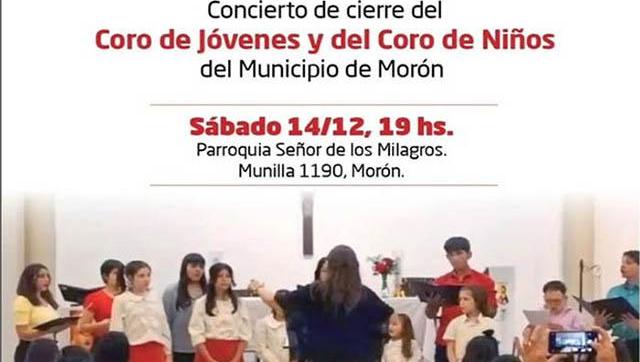 El próximo sábado 14 de diciembre, los coros de niños y jóvenes de Morón ofrecerán un concierto muy especial para despedir el año, a partir de las 19 horas, en la Parroquia Señor de los Milagros, ubicada en Munilla 1190, Morón Centro.